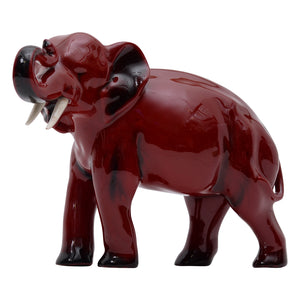 The elephant flambe sculpture was produced by Royal Doulton.