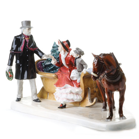 A very impressive presige piece; huge in scope, depicts a winter christmas scene of a magificant horse drawing a sleigh carrying mother, child and a Christmas tree, - This piece has been professionally restored