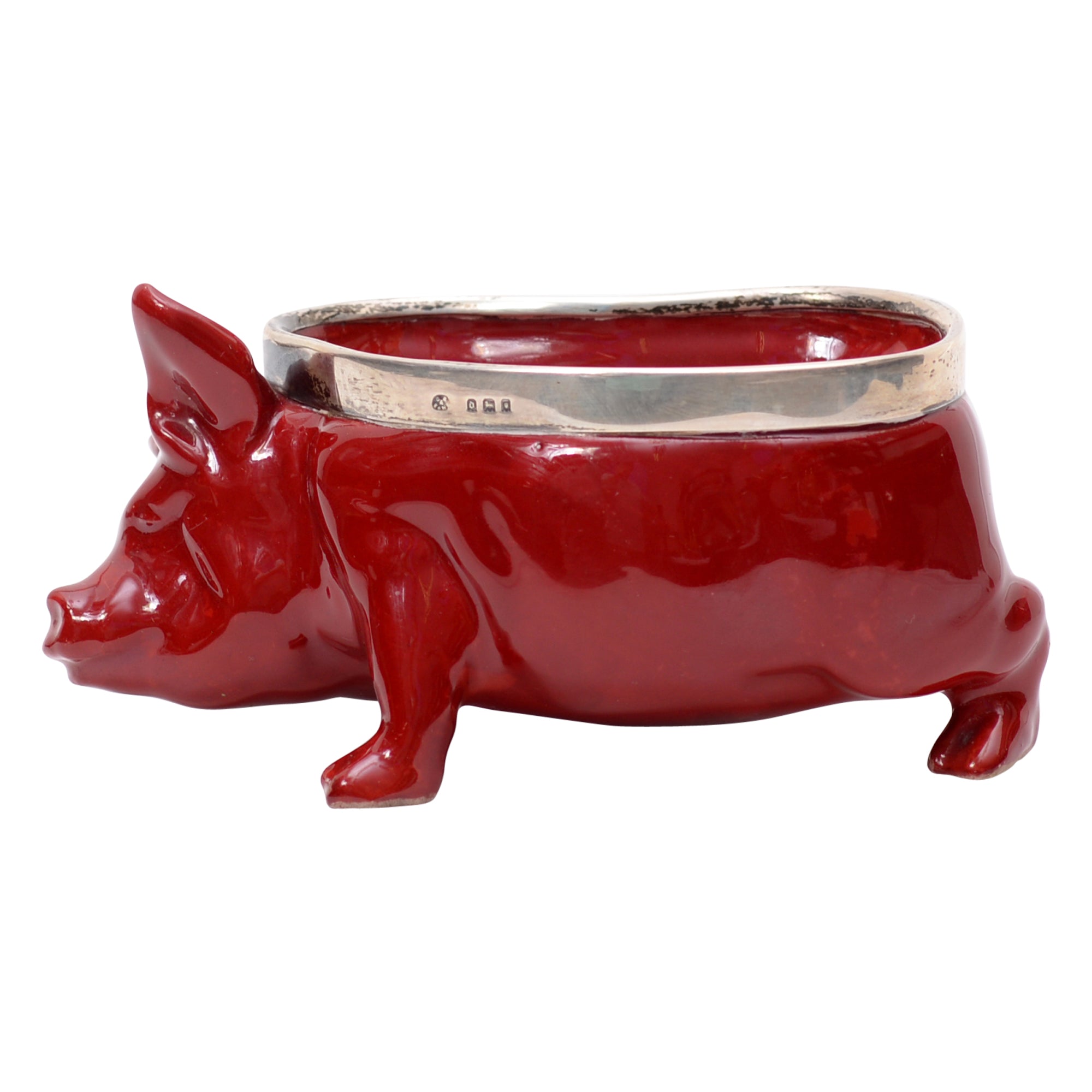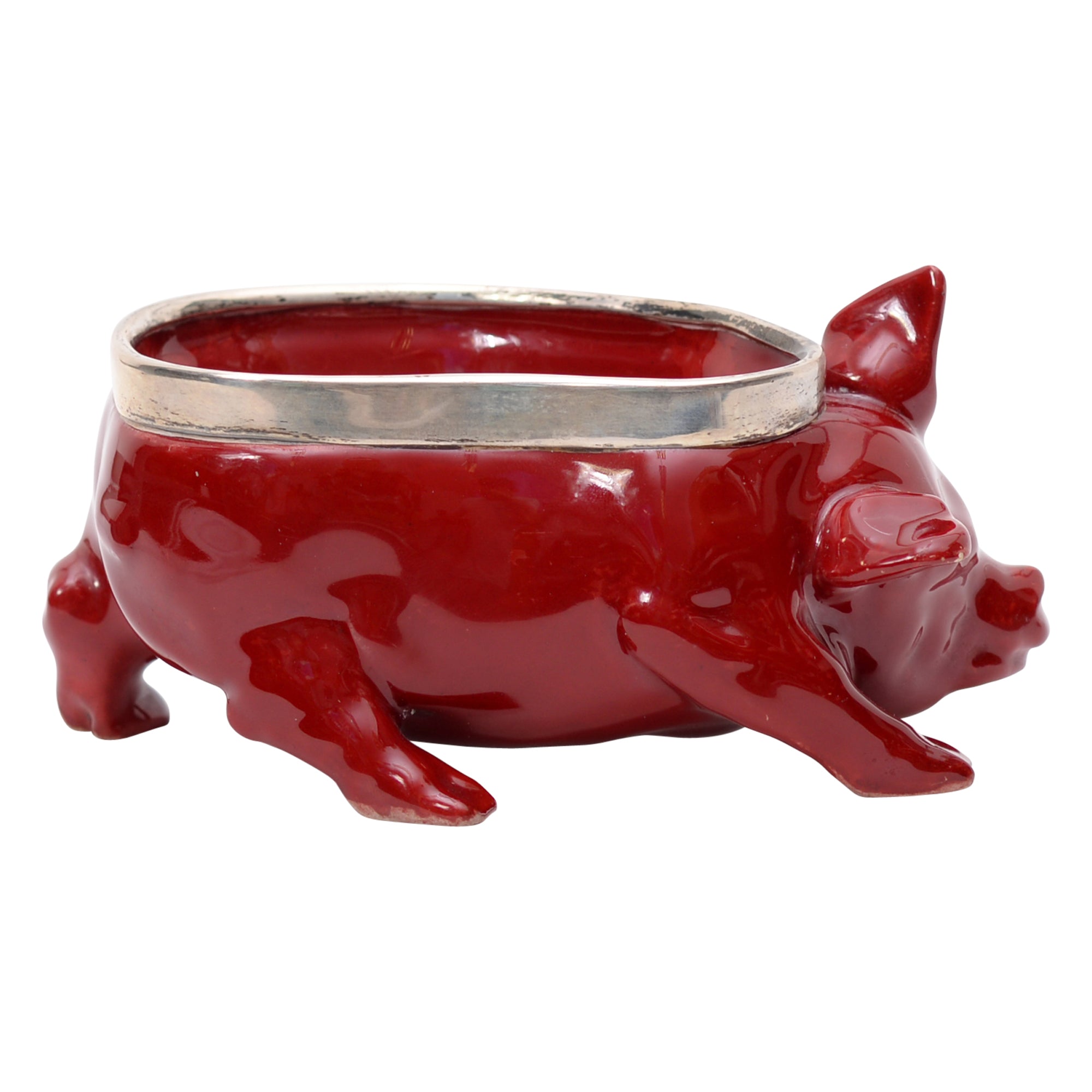 The pig flambe bowl with plated ring was produced by Royal Doulton.