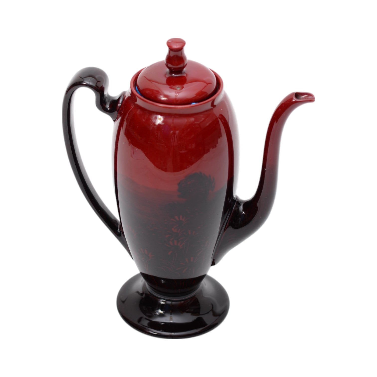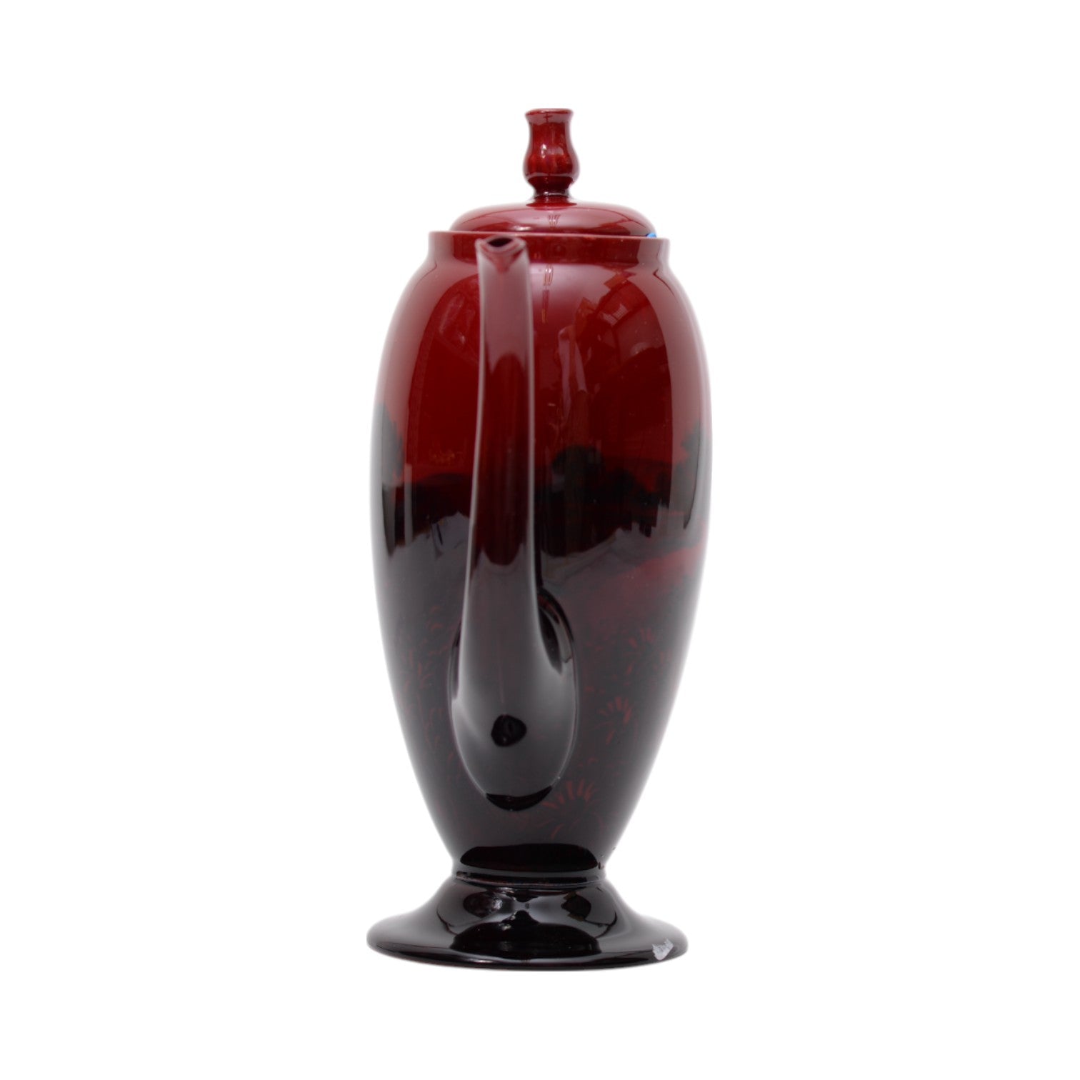A Doulton Flambe coffee pot, factory marks to base.